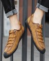 Large Size Hand Stitching Men's Casual Shoes- Sandy Brown EU 46